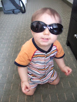Elliot continued to work on his standing skills over the weekend, and he is now standing for long enough periods of time for Mommy to take a picture. The black thing he is holding in the photo is a piece of his Thomas the Train push toy. He continues to cruise everywhere and can even stand up with out pulling-up on something. I won't be surprised if he is running by his birthday!